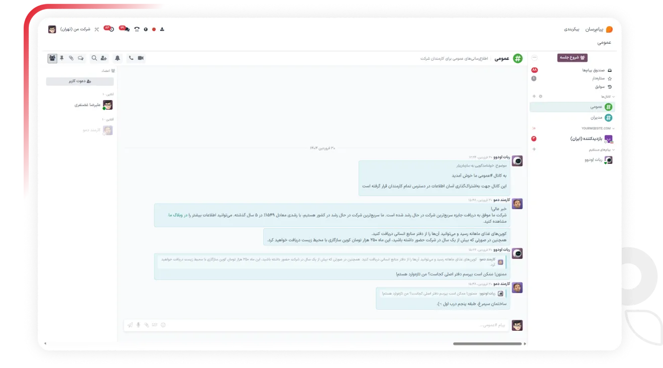 پیام‌رسان سازمان‌یار ابزاری است که به شما کمک می‌کند تا همکاری لحظه‌ای با همکاران و مشتریان را به بالاترین سطح ممکن برسانید.