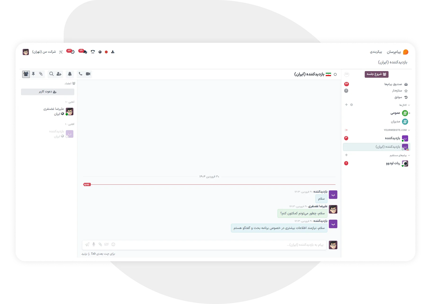 پیام‌رسان فراتر از یک ابزار پیام‌رسانی ساده است؛ با این یک سیستم ارتباطی هوشمند تمامی کانال‌های ارتباطی شما، از چت‌های خصوصی و فوری با همکاران گرفته تا یکپارچگی کامل با واتساپ برای تعامل مؤثر با مشتریان، سیستم چت زنده برای پشتیبانی سریع وب‌سایت، و همچنین قابلیت‌های تماس صوتی و کنفرانس ویدیویی با کیفیت بالا، همگی به صورت یکپارچه در اختیار شما هستند.