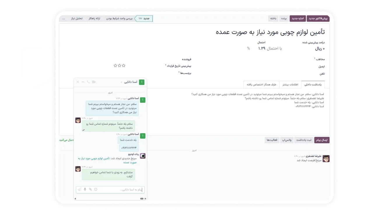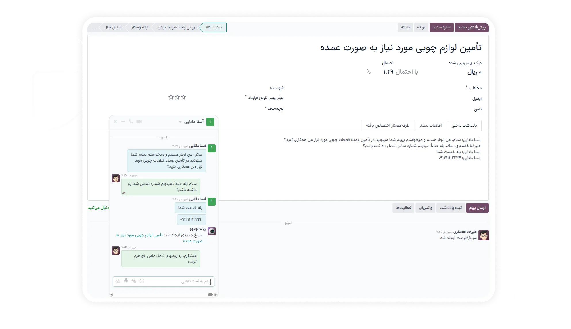 چت زنده به شما کمک میکند بازدیدکنندگان وبسایت را به مشتریان بالقوه تبدیل کنید. با برقراری ارتباط فوری، تیم شما میتواند سؤالات مشتریان را در لحظه پاسخ دهد و راهنماییهای شخصیسازیشده ارائه کند. این تعاملات میتوانند بهراحتی به سرنخهای فروش در ماژول CRM سازمانیار تبدیل شوند. تیم شما میتواند با ارائه پاسخهای دقیق و بهموقع، اعتماد او را جلب کرده و او را به یک مشتری وفادار تبدیل کند.