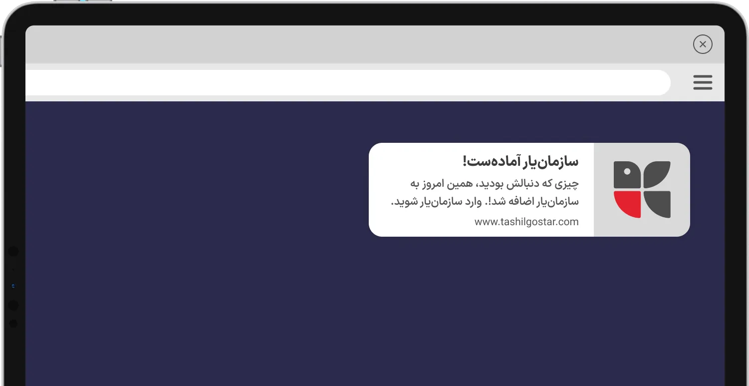 با اعلانهای Push Notification، پیامهای فوری و اثرگذار ارسال کنید. وقتی یک اعلان به کاربر نمایش داده میشود، بلافاصله توجه او را جلب میکند. این پیامهای کوتاه و دقیق، بهسادگی از گوشهی صفحه قابل مشاهدهاند و در صورت جلب علاقه، کاربر تنها با یک کلیک وارد تعامل میشود.