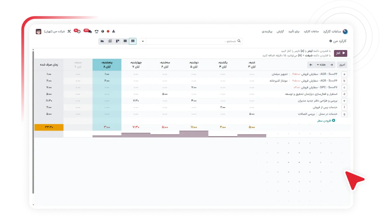 این یعنی هر دقیقه از زمان کارکنان شما قابل اندازه‌گیری و مدیریت است.
