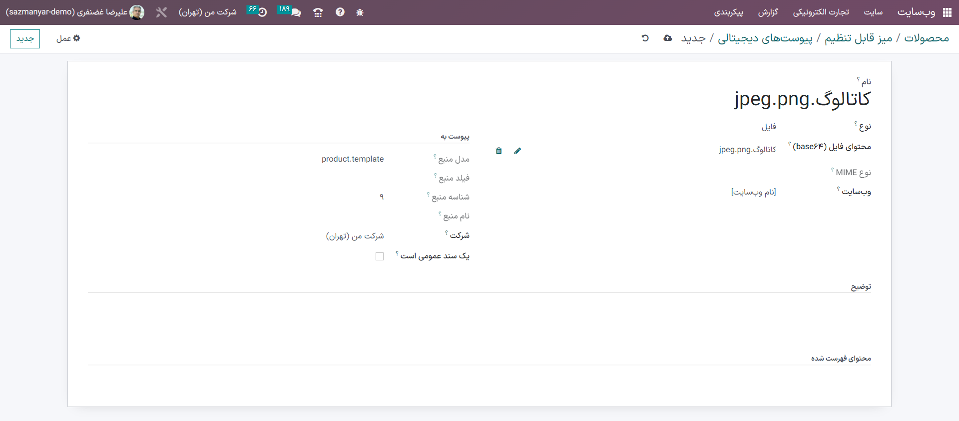 از این قسمت میتوانید محتوای دیجیتال را به محصول خود اضافه کنید، مانند کتابچه راهنمای کاربر یا هر سندی که با محصول شما مرتبط باشد.