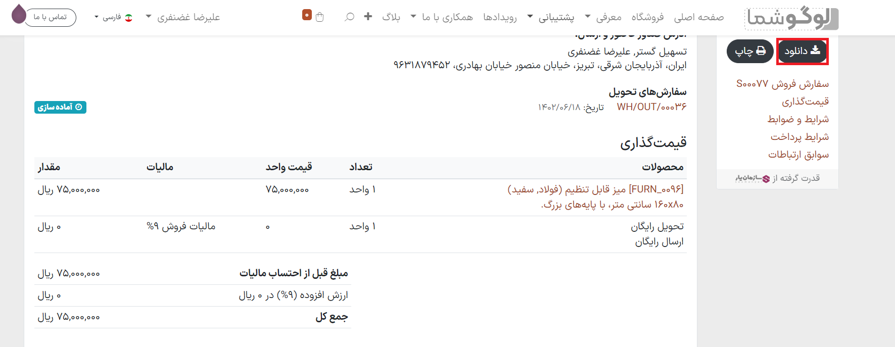 با کلیک بر روی آن، میتوانید اسناد پیوست شده به محصول خریداری شده را دانلود کنید.