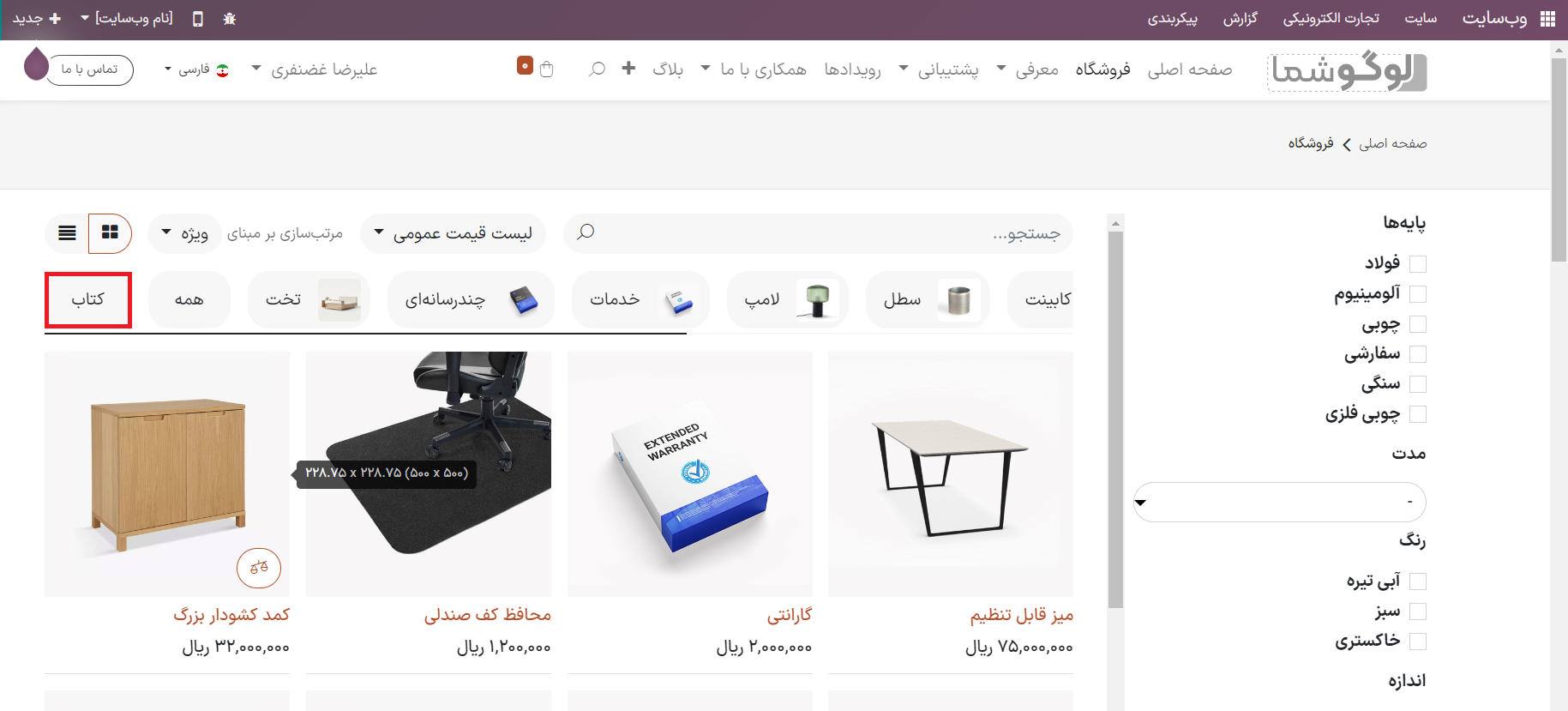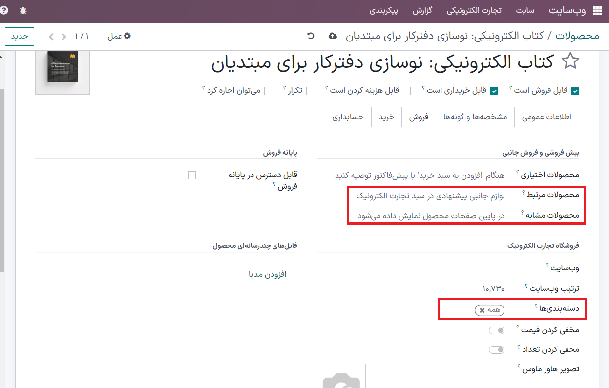 همچنین میتوانید دسته بندی محصولات تجارت الکترونیکی را تنظیم کنید. با این کار مشتری میتواند به راحتی به دسته "کتاب" دسترسی داشته باشد.