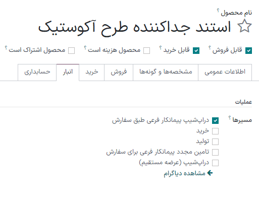 اگر از انبار خودتان مواد خام را به پیمانکاران فرعی ارسال می‌کنید، باید مسیر تأمین مجدد پیمانکار فرعی بر اساس سفارش را طبق تصویر زیر فعال کنید. اگر این جزء را از فروشنده‌ای خرید می‌کنیدف مسیر خرید نیز باید فعال شده باشد.