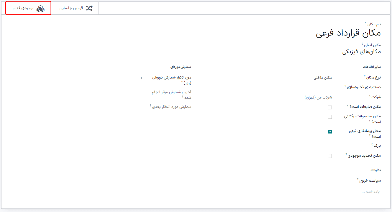 در فرم مکان می‌توانید به موجودی فعلی دسترسی پیدا کنید.