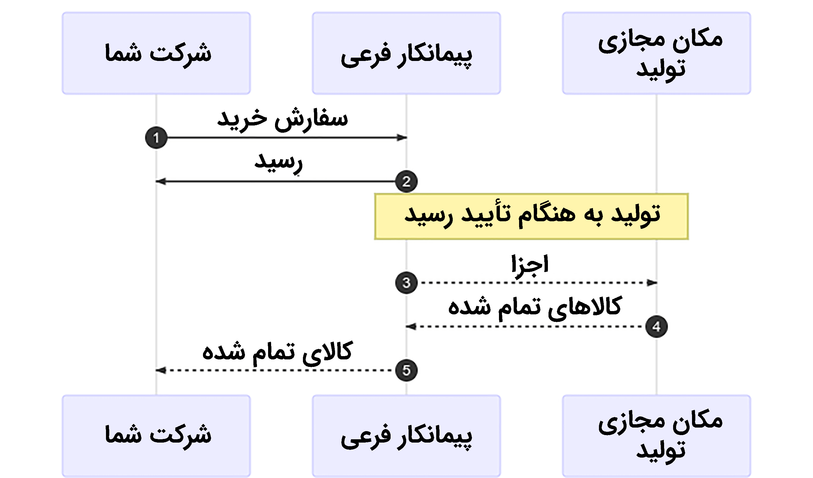 • محصولات تمام شده را در مکان پیمانکار فرعی تولید می‌کند (4)؛