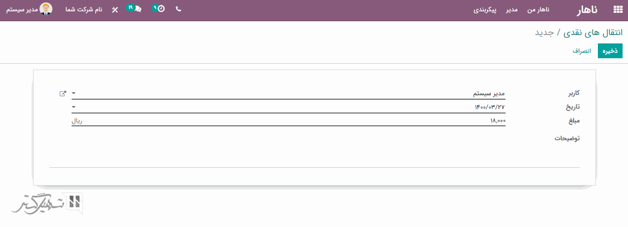 در فرم ایجاد نام کاربر، تاریخ، مبلغ و توضیحات را وارد کرده و بر روی دکمه "ذخیره" کلیک کنید: