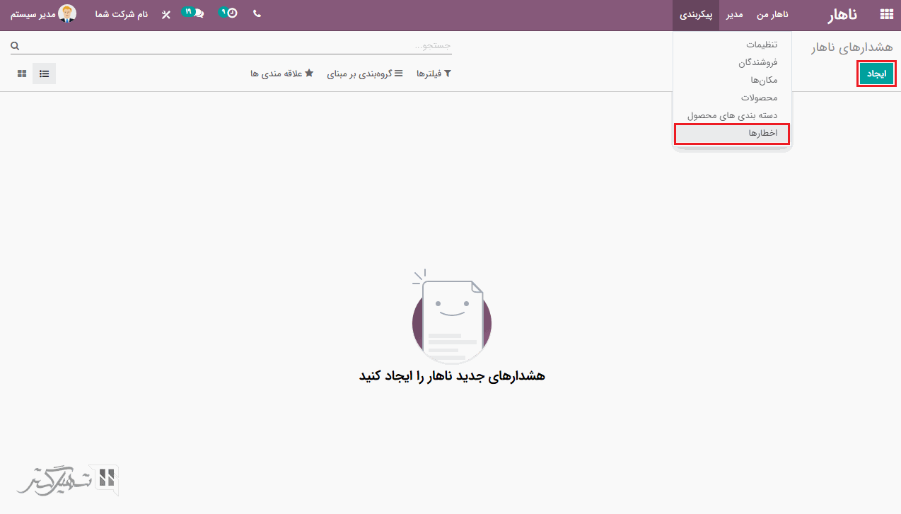 بله، هشدارها را می توانید از طریق ماژول ناهار> پیکربندی> اخطارها> کلیک بر روی دکمه "ایجاد" ، ایجاد کنید: