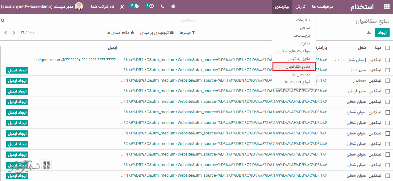 بله، می توانید از طریق ماژول استخدام> پیکربندی> منابع متقاضیان ، به آدرس های اینترنتی منابع متقاضیان دسترسی داشته باشید.