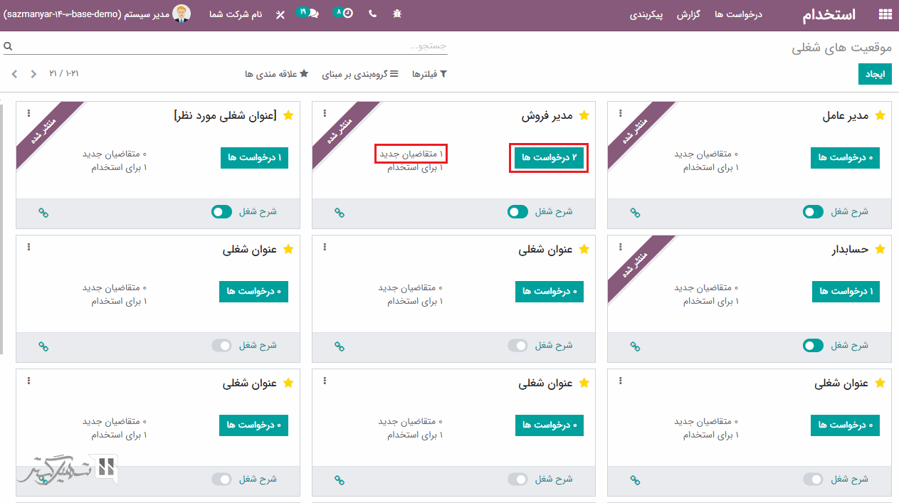 بله، برای این کار ابتدا به داشبورد ماژول ارجاع بروید، سپس بر روی دکمه "مشاهده مشاغل" کلیک کنید: