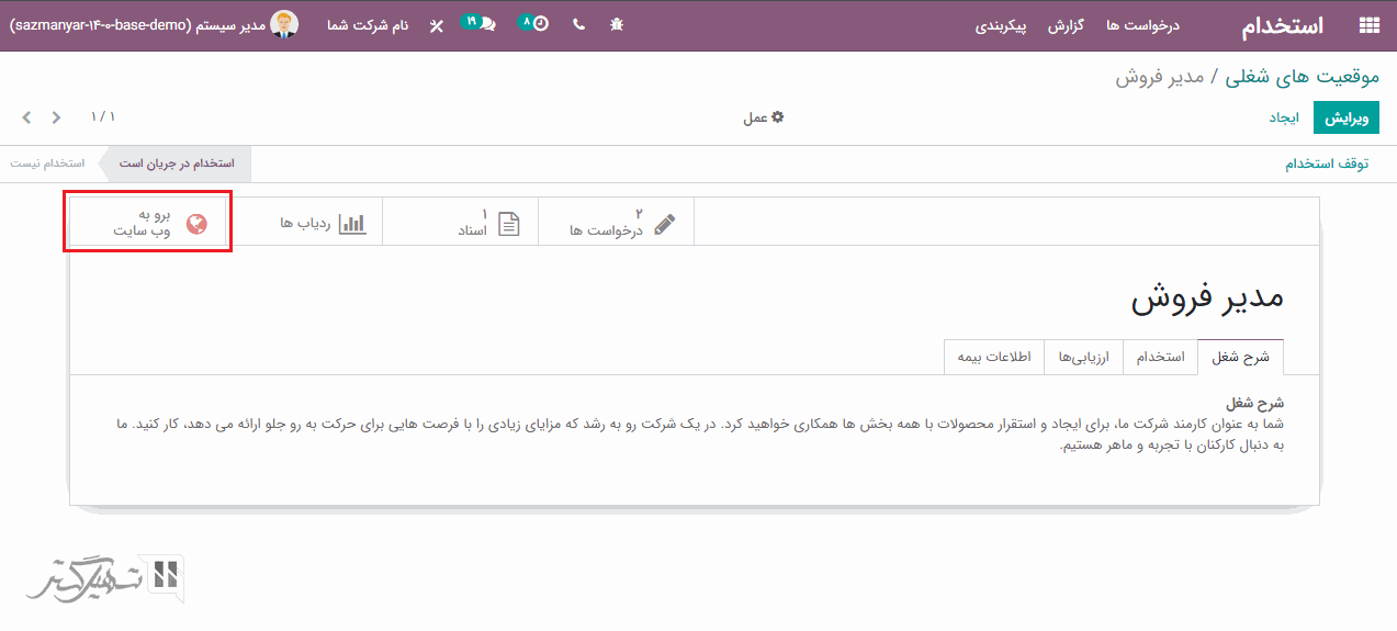 برای این کار، بر روی دکمه "برو به وب سایت " موجود در فرم موقعیت شغلی، کلیک نمایید: