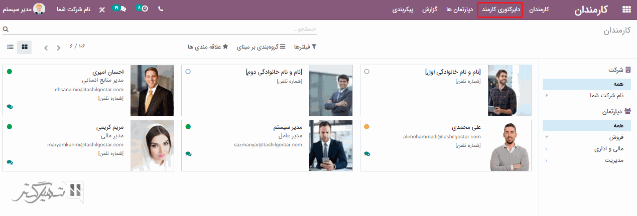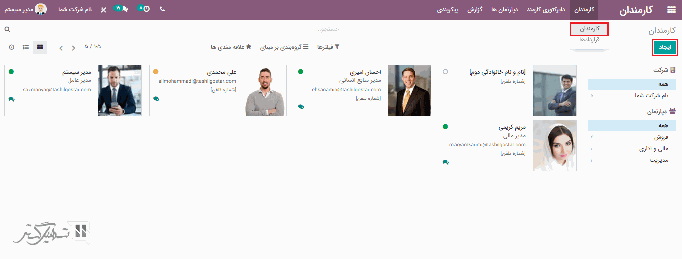 به ماژول کارمندان> دایرکتوری کارمندان بروید: