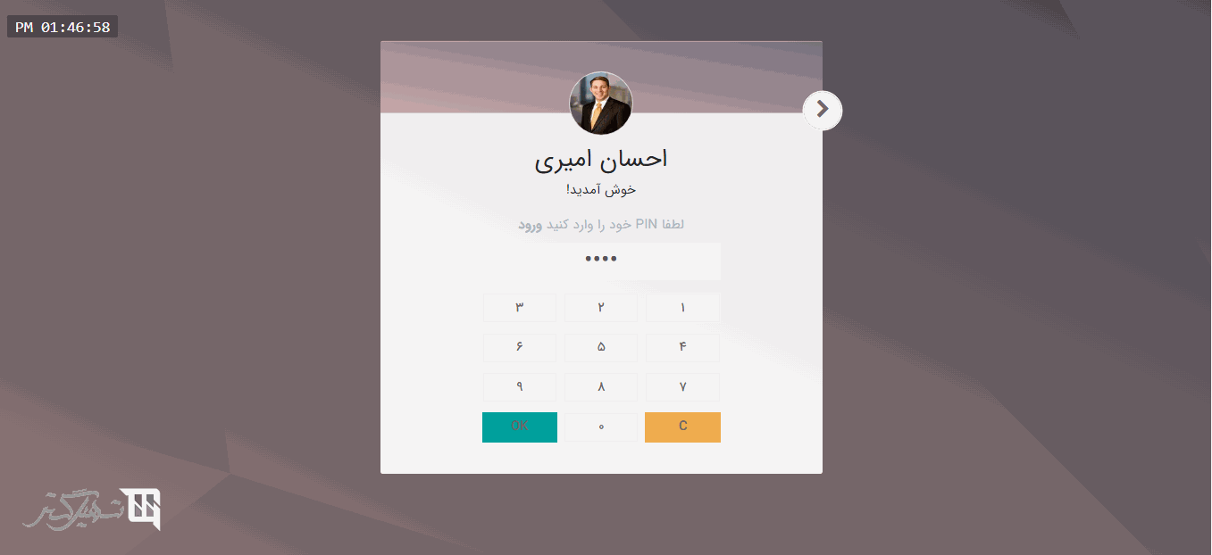 بعد از کلیک بر روی گزینه "شناسایی دستی" ، به فهرست کارمند ها هدایت خواهید شد، اکنون اگر بر روی هر کدام از کارمند ها کلیک نمایید، از شما درخواست می شود پین کارمند را وارد نمایید: