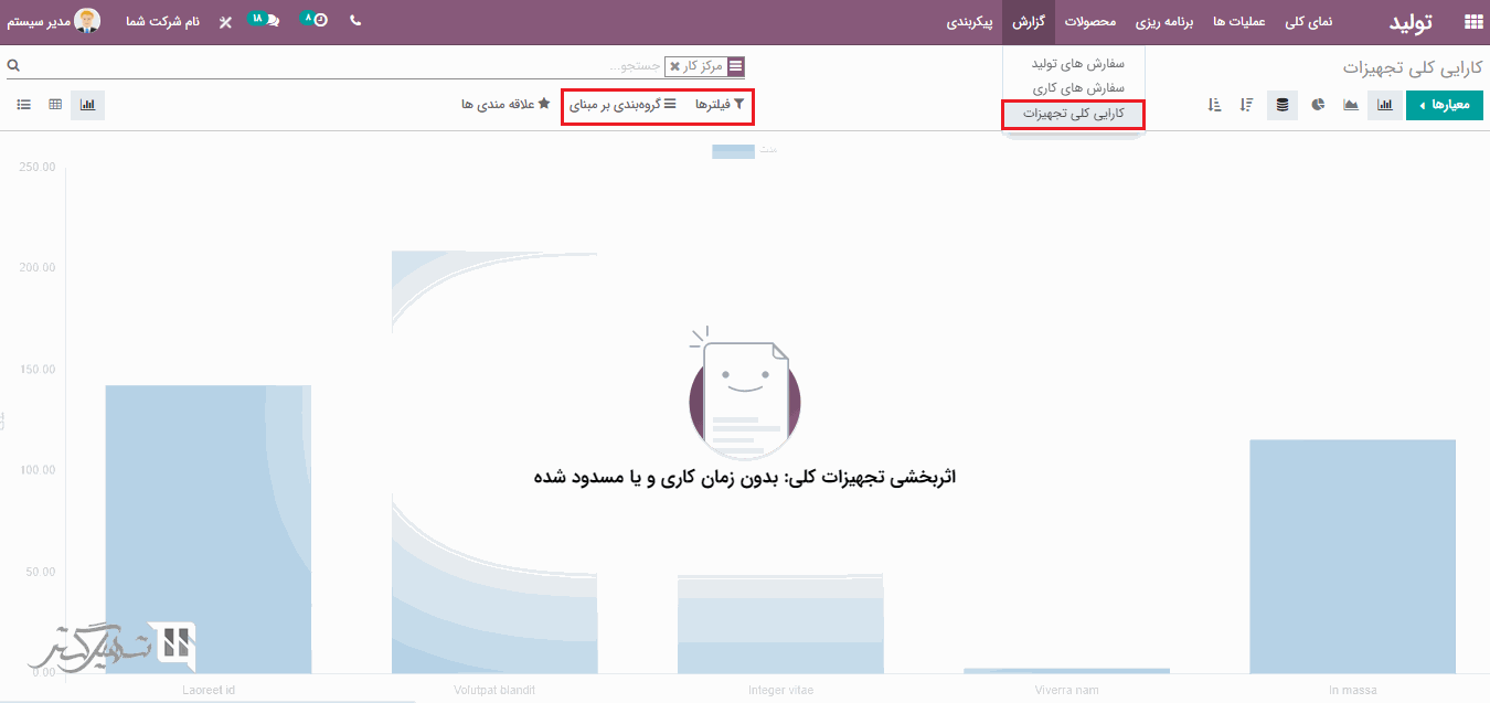 به ماژول تولید> گزارش> کارآیی کلی تجهیزات بروید. در اینجا گزارش های مربوط به کارآیی قابل مشاهده خواهد بود.