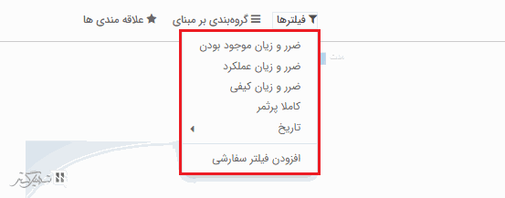، برای فیلتر کردن داده ها بر اساس کاملاً پرثمر، ضرر و زیان عملکرد، ضرر و زیان کیفی، ضرر و زیان موجود بودن و غیره استفاده کنید.