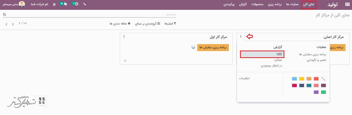 در هر مرکز کار، ما OEE (هدف کارآیی کلی و موثر بر حسب درصد) را اضافه می کنیم.