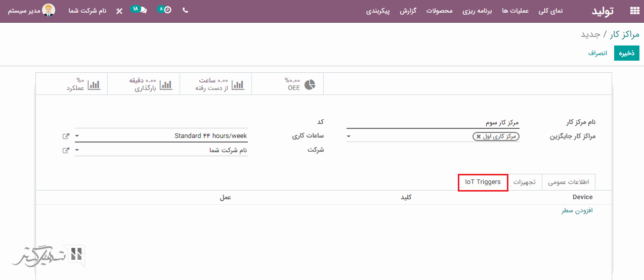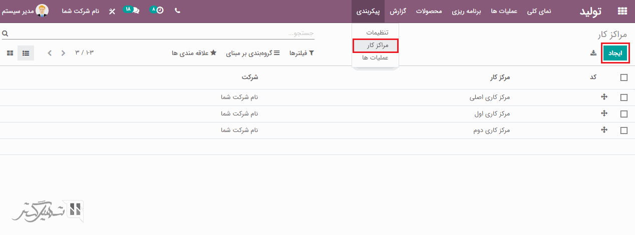 ماژول تولید> پیکربندی> مراکز کار