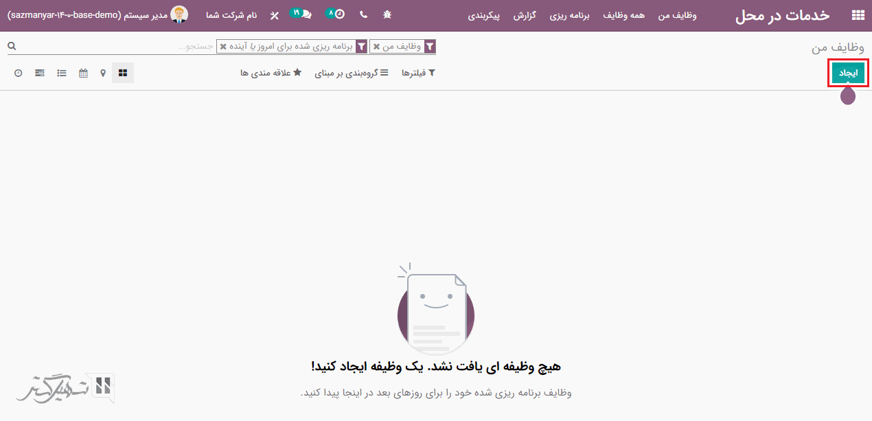 سپس اگر بر روی دکمه  "ایجاد" کلیک کنید، به فرم ایجاد زیر وظایف جدید هدایت خواهید شد: