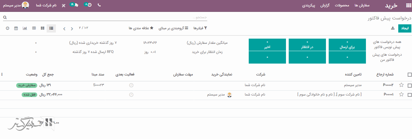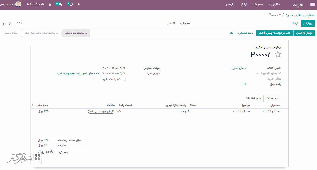 اکنون هر زمان که درخواست پیش فاکتور خرید خودکار ایجاد شود، به اولین تامین کننده مشخص شده در لیست ارسال خواهد شد.