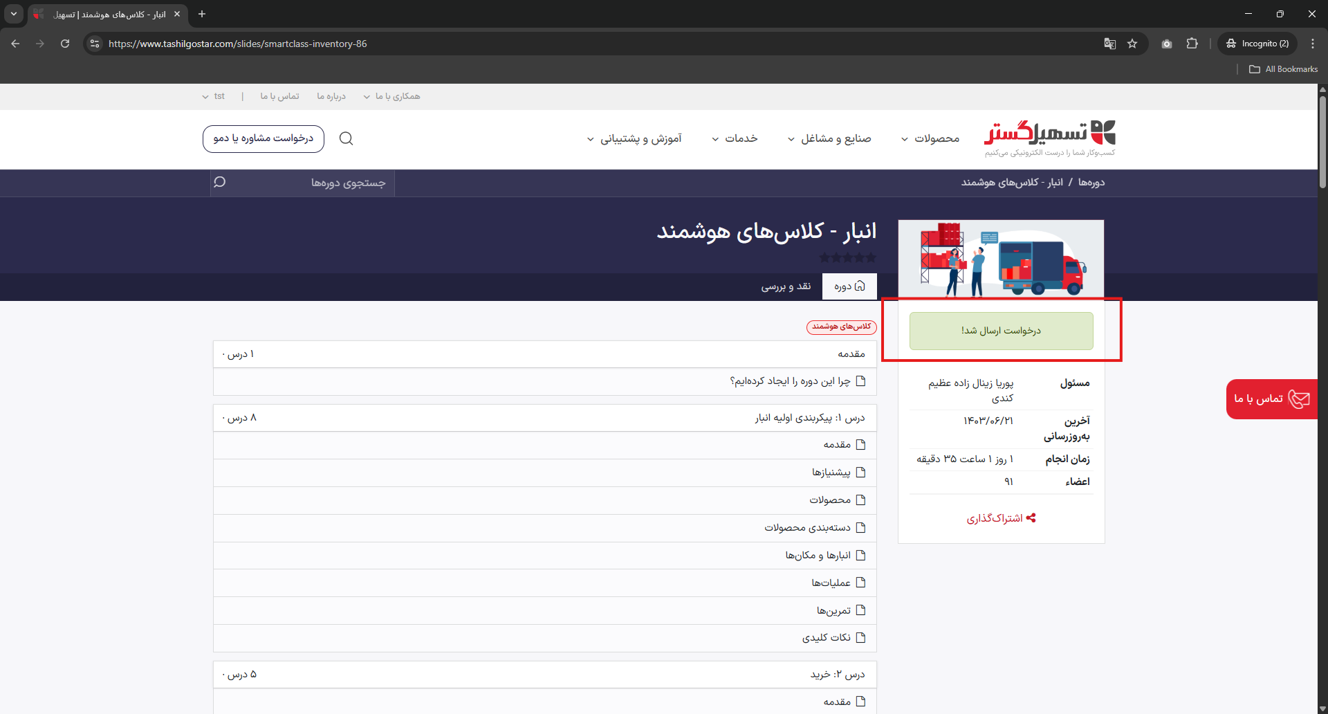 از آنجا که این دورهها جزء منابع آموزشی عمومی نیستند، جهت دسترسی به این دورهها، ابتدا باید درخواست خود را ثبت فرمایید. توجه داشته باشید که برای ثبت درخواست، لازم است ابتدا وارد حساب کاربری خود در سایت تسهیلگستر شده باشید.