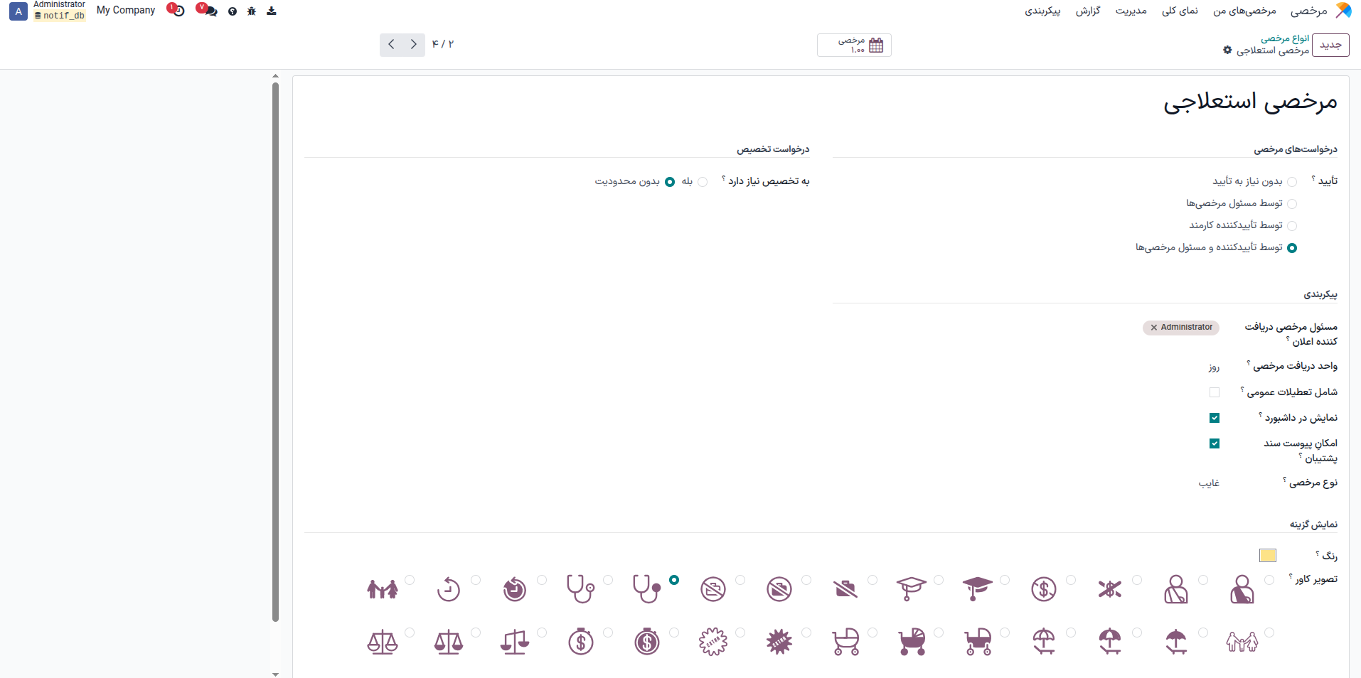 مرخصی -> پیکربندی -> انواع مرخصی