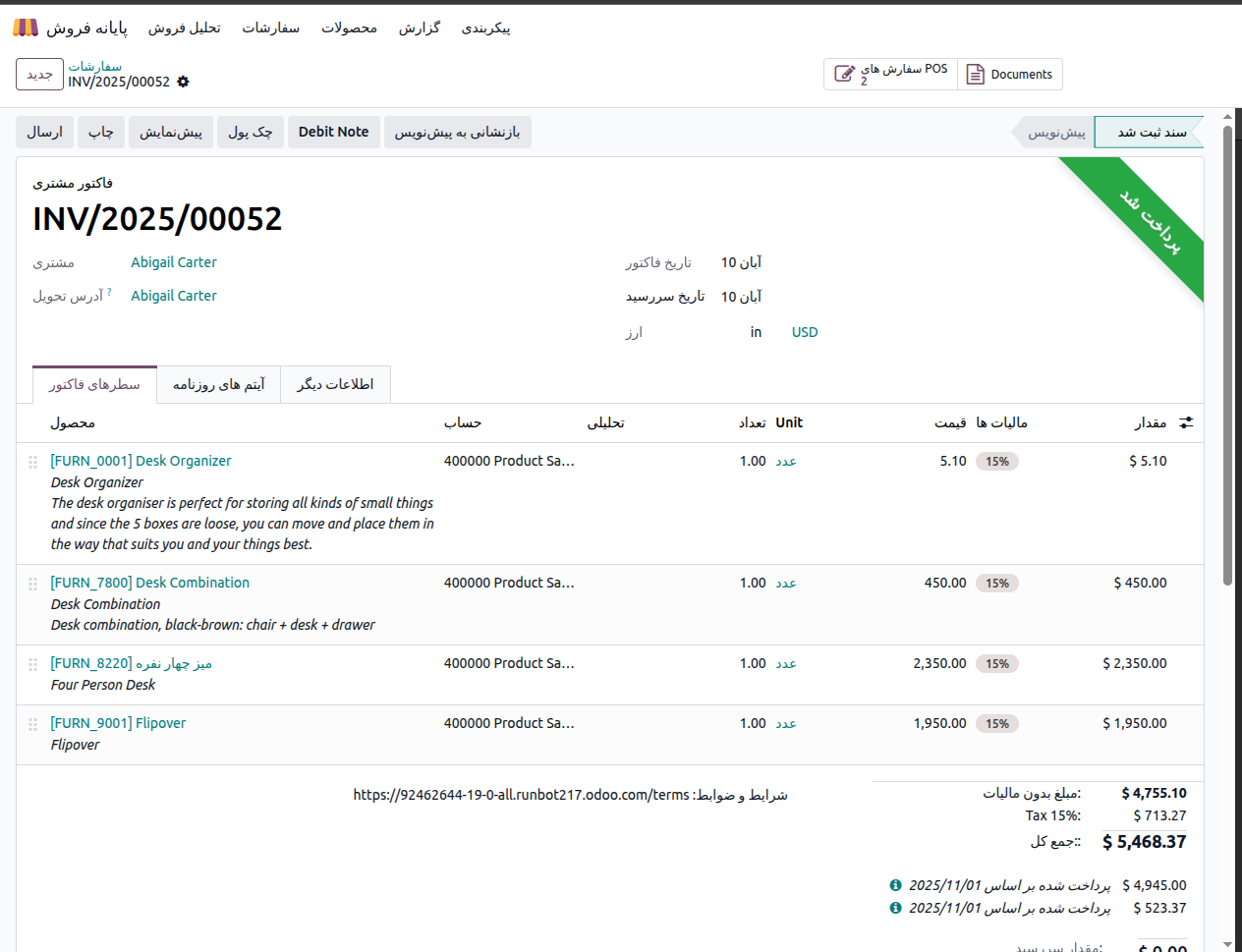 این قابلیت یکی از ویژگیهای کاربردی و جدید در Odoo 19 است که به شما امکان میدهد تنها با یک کلیک، برای مشتری مربوطه فاکتور تجمیعی ایجاد کنید.