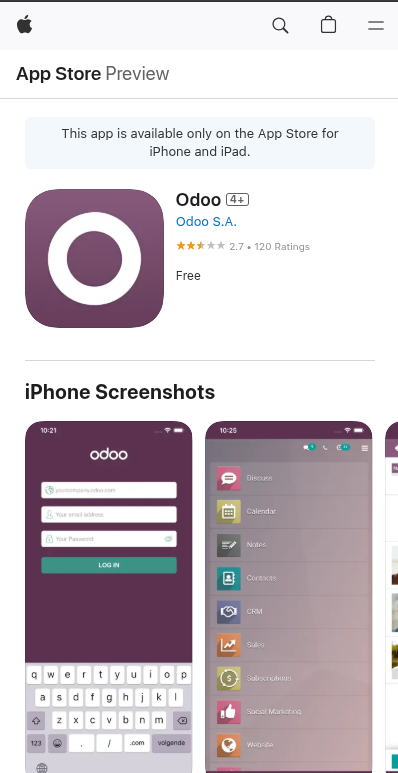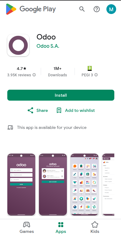 برای اندروید اپلیکیشن Odoo رو از Google play دانلود کرده و برای ایفون از App store دانلود کنید.