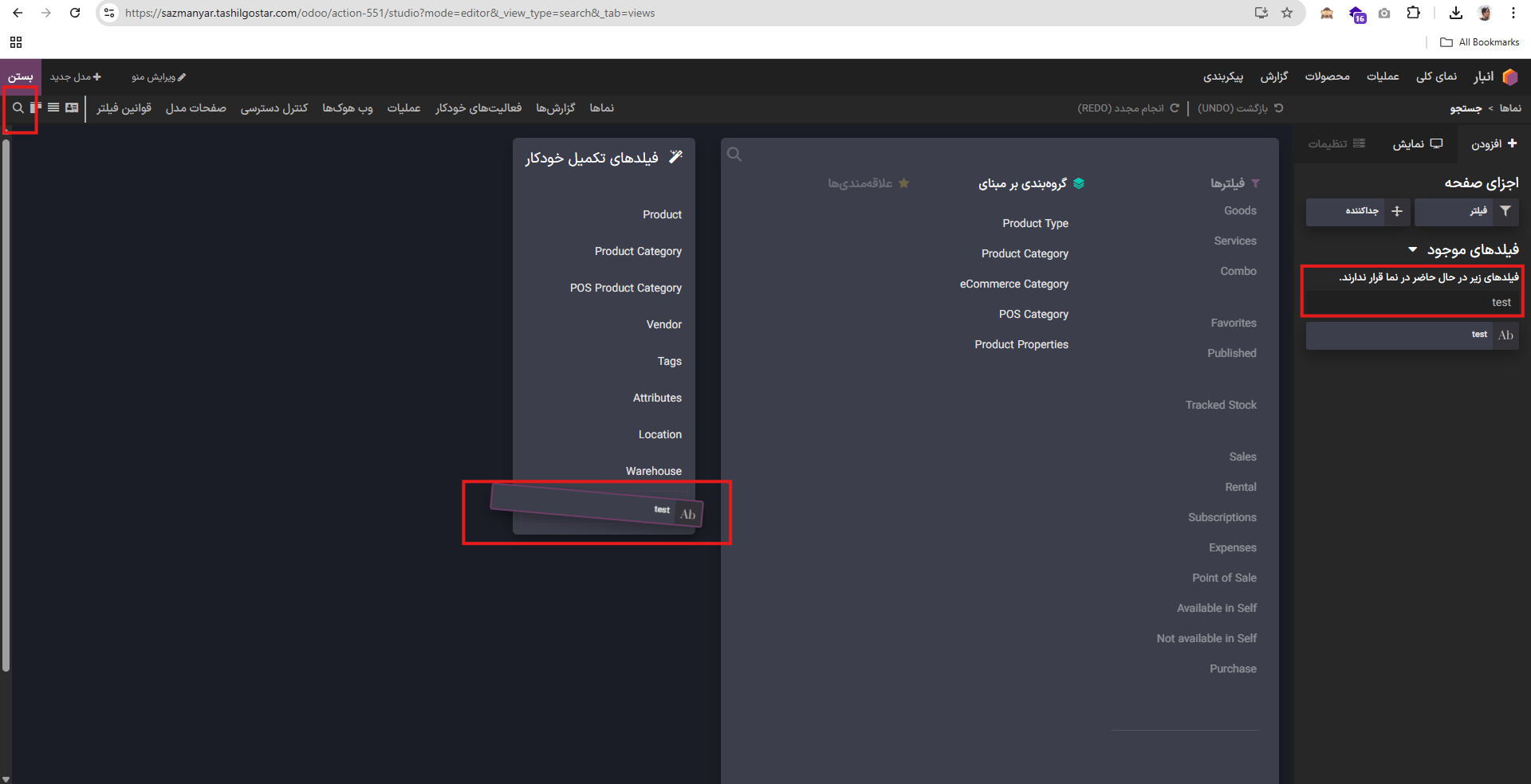 من در ماژول فروش، در پنجره ایجاد محصول، یک فیلد متنی توسط استودیو گذاشتم ولی موقع سرچ محتوای این فیلد جستجو نمیشه. به چه شکل باید تنظیم کنم؟