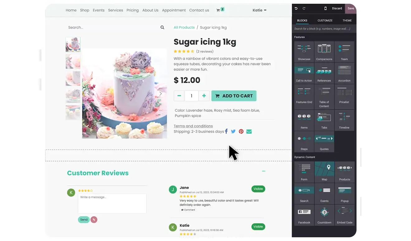 سایت‌ساز مبتنی بر هوش مصنوعی ، فروشگاه آنلاین ایده‌آل شما را باید به‌سادگی ساخته و نگهداری می‌کند. کافیست در مدت زمان کوتاهی، با استفاده از تم‌های تجاری اختصاصی، وب سایت محبوب خود را ایجاد کنید و صفحات محصول شیک را با کشیدن و رها کردن بلوک‌ها طراحی کنید.