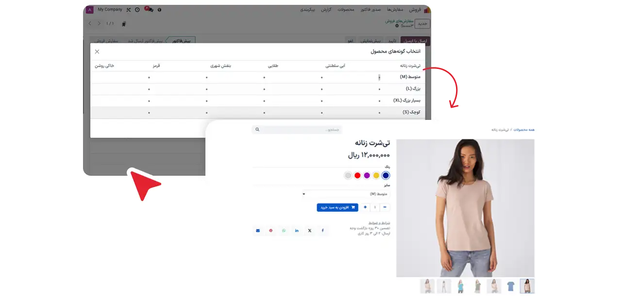 فرآیند سفارش‌دهی را با استفاده از یک شبکه متغیر که تمام ترکیب‌های گونه و مشخصه‌های محصول (مانند اندازه‌ها، رنگ‌ها) را نمایش می‌دهد، ساده کنید.