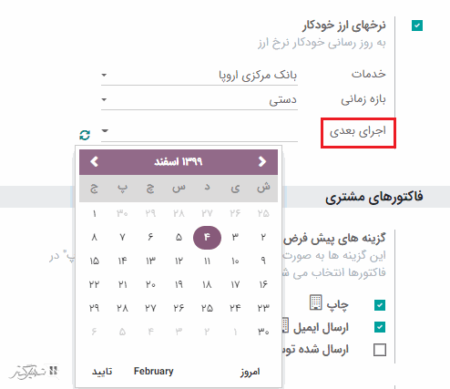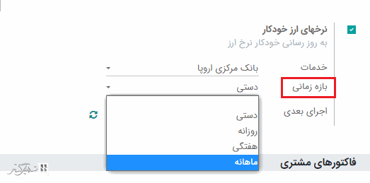 به طور پیش فرض، ارزها باید به صورت دستی در ERP تغییر کنند. با این حال، با استفاده از اودوو، کاربر می تواند ارزها را با خدمات مختلف مبادله ای مانند یاهو، بانک مرکزی اروپا و غیره هماهنگ کند تا نرخ های خودکار ارز را دریافت کند.