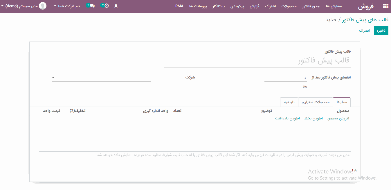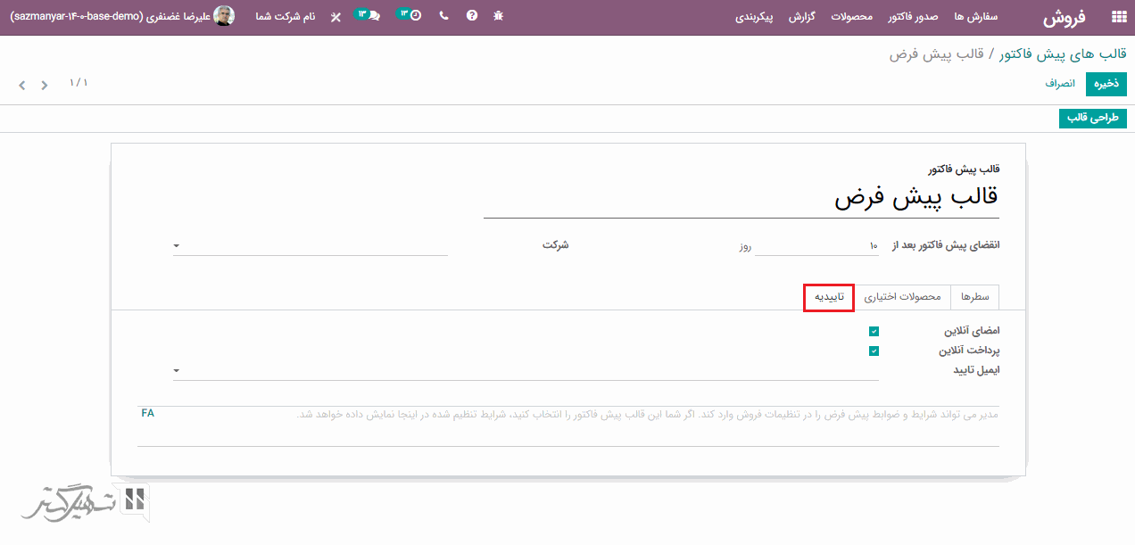 ایجاد قالب پیش فاکتور