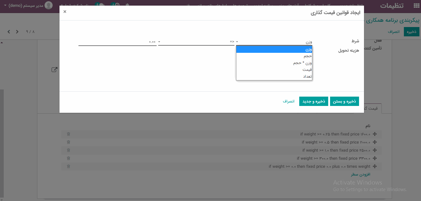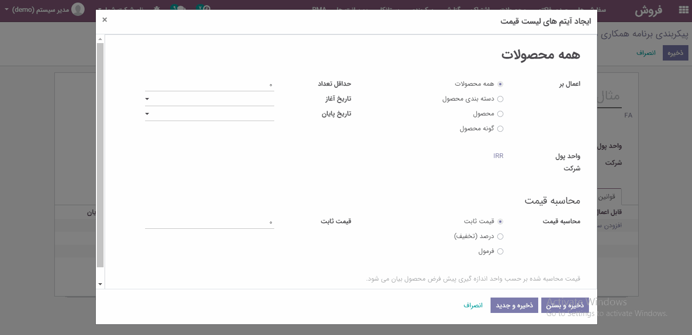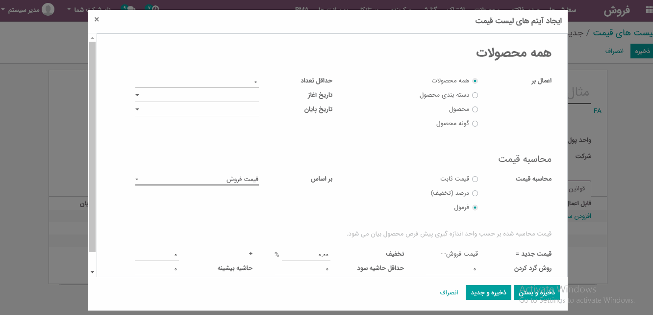 "قوانین پیشرفته قیمت (تخفیف ها، فرمول)"