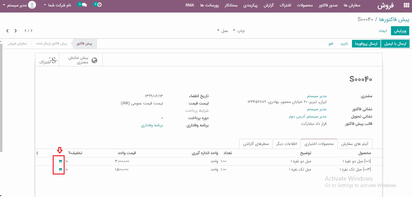 محصولات پیشنهادی/ اختیاری را در پیش فاکتور اضافه کنید.