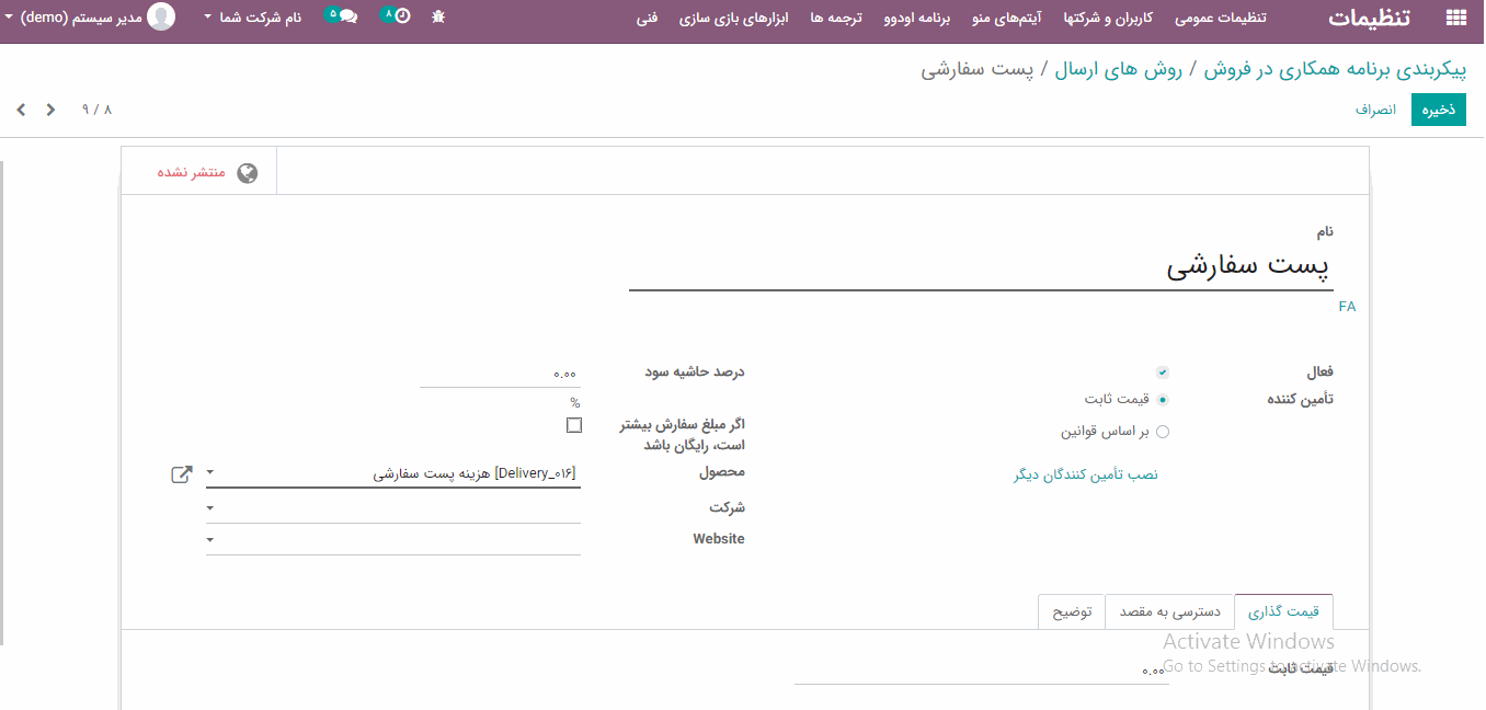 دو نوع لیست قیمت در اودوو وجود دارد: