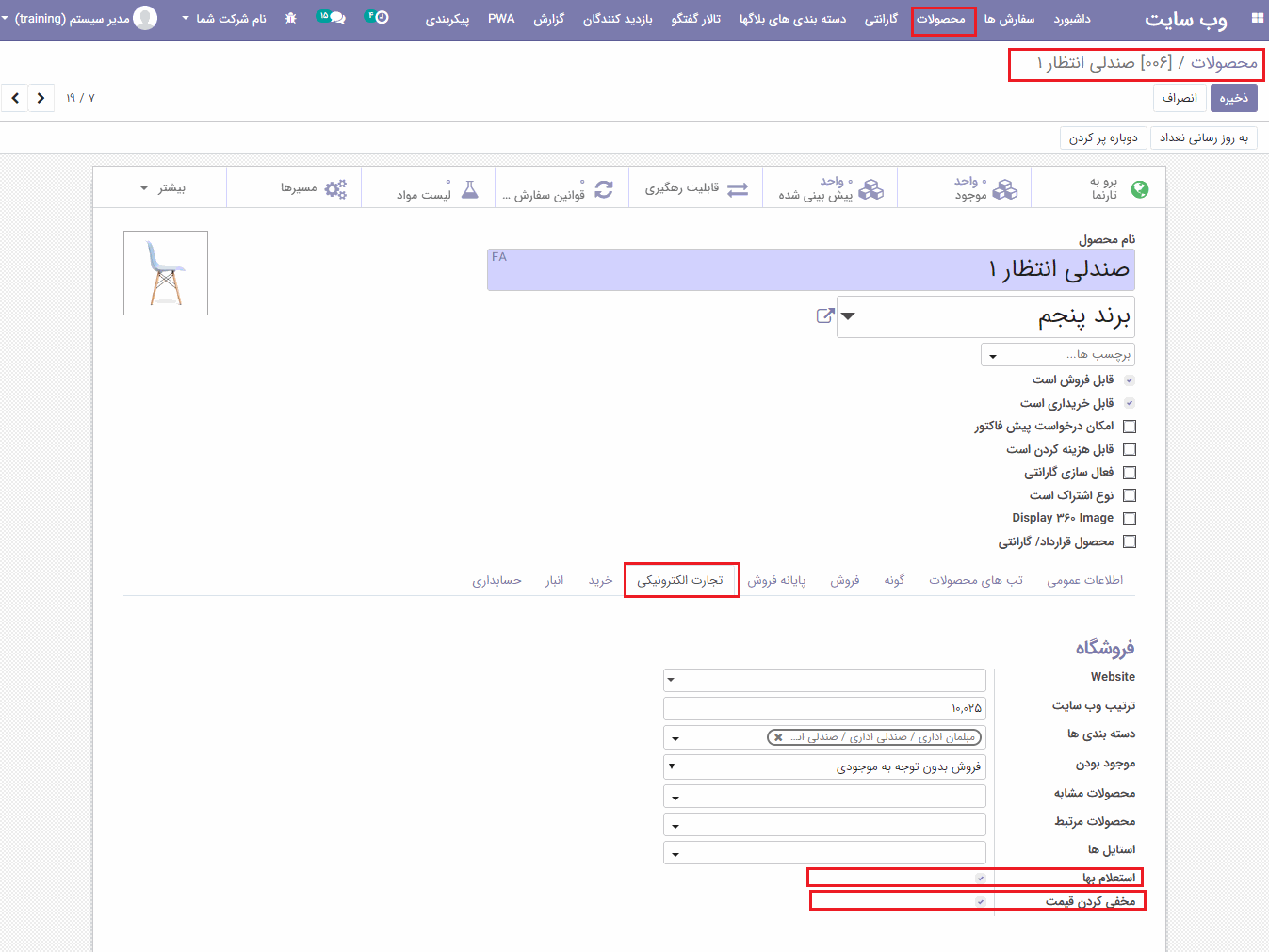 گزینه "استعلام بها" و "مخفی کردن قیمت" را برای محصول فعال کنید.