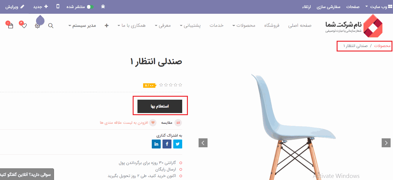 افزودن کلید "استعلام بها" در صفحه جزئیات محصول
