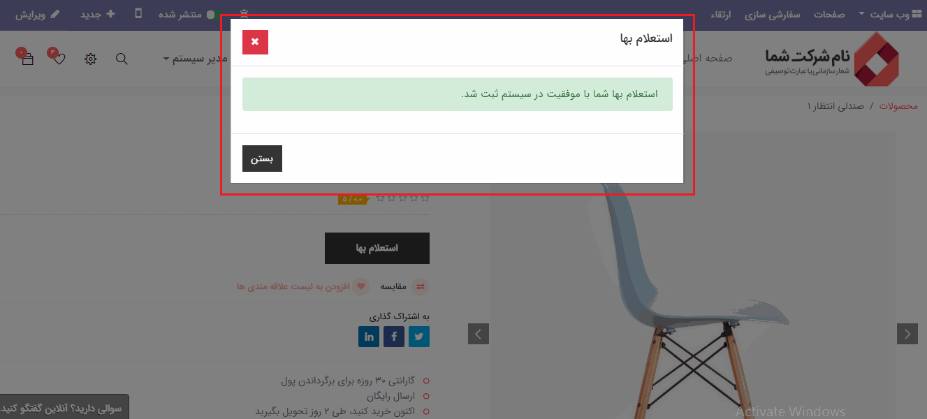 پیام موفقیت آمیز ثبت استعلام بها، برای شما نمایان خواهد شد.