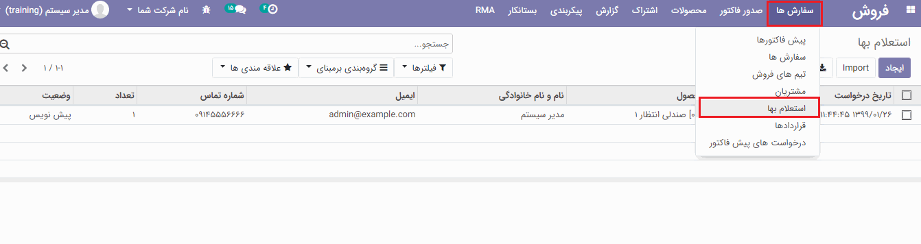 ماژول فروش> سفارش ها> استعلام بها برای درخواست های وارد شده از طرف مشتری، به صورت خودکار ایجاد می شود.