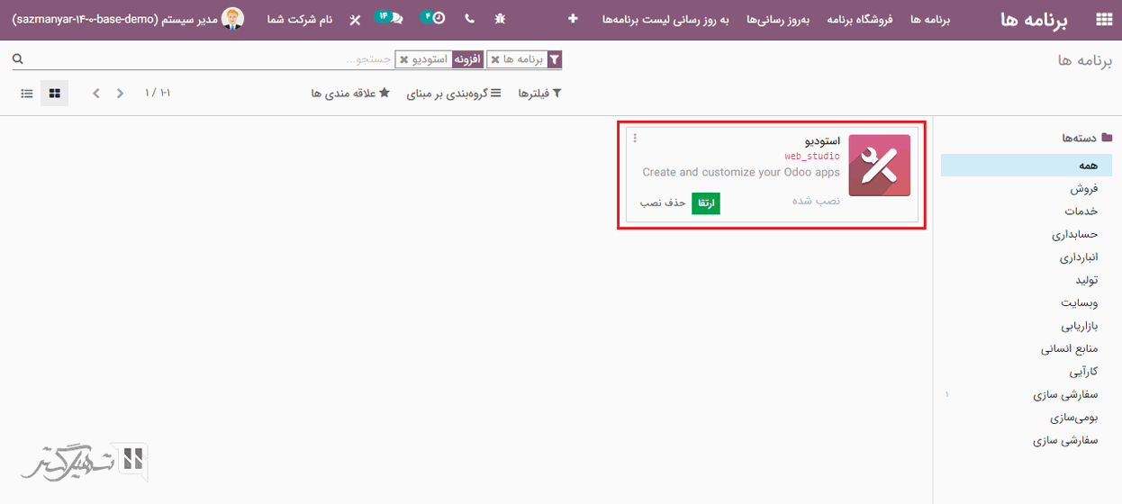 ماژول استودیو اودوو ای آر پی ( Odoo ERP ) ، جعبه ابزاری است که به شما امکان می دهد بدون داشتن دانش برنامه نویسی، مدل هایی اضافه کنید. همچنین می توانید بدون نیاز به وارد کردن کد XML، نماهای سفارشی ایجاد کرده و نماهای موجود را اصلاح کنید. حتی توسعه دهندگان باتجربه، برای تایپ کد به زمان زیادی نیاز دارند. با استفاده از این افزونه، می توانید به سرعت مدل های خود را مرتب کرده و بر بخش های مهم برنامه خود تمرکز کنید. استفاده از ماژول استودیو یک راه حل کاربرپسند است که سفارشی سازی و طراحی برنامه های جدید را با یا بدون مهارت برنامه نویسی آسان می کند.